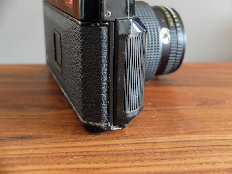 集合写真撮影等の業務に使う「お仕事カメラ」として発売されたこともあり、シンプルかつ堅牢な作りになっている。ただその性質上、今の中古市場にある個体はくたびれたものが多く、この個体も多分に漏れずお疲れ気味。