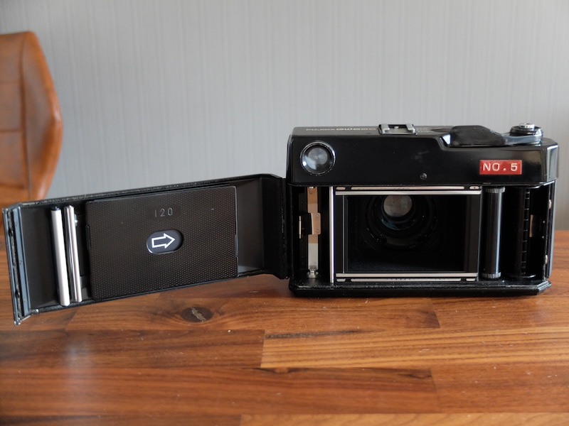 6×9なので、120フィルムなら8枚撮り、220フィルムなら16枚撮りだ。スイッチで切り替えられる。ブローニーフィルムもかなり高価なので1コマあたりで換算したくないね…