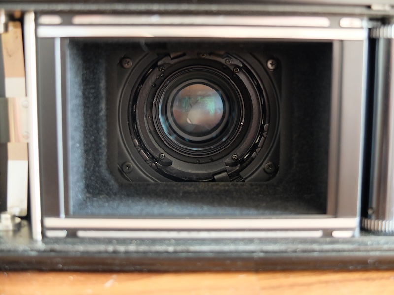 レンズはEBCフジノンの90mm F3.5が搭載されている。これだけのフォーマットを綺麗に写すには高性能なレンズが必要なんだけど、そこはフィルムメーカのカメラにハズレなしと言われるだけあってかなりの高性能。ただしレンズは固定式のため、交換はできない。