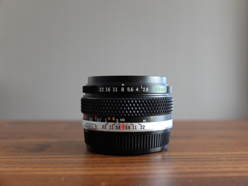 焦点距離は28mmでF2.8、よくある広角レンズのスペックである。